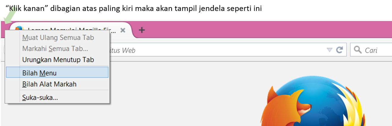 klik “Bilah menu” ( Tab Menu) sehingga ada tanda contrengnya