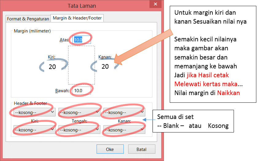 catatan : margin kiri dan kanan Sesuaikan nilai nya ,Semakin kecil nilainya maka gambar akan semakin besar dan memanjang ke bawah. Misalnya jika Hasil cetak Melewati kertas maka… nilai margin kiri dan kanan di naikkan.